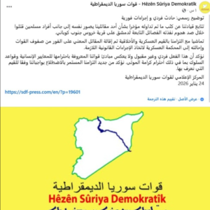 اعترفت ميليشيا قسد بمقتل 21 شخصًا في عين العرب، ووصفت الحادثة بأنها حادث فردي بحسب بيان أصدره المركز الإعلامي لـ قسد يوم الجمعة الماضي.